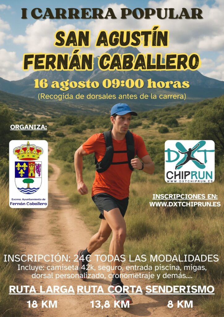 1. El ayuntamiento de Fernán Caballero a través de su concejalía de deportes organiza la primera carrera popular “San Agustín” con salida desde el ayuntamiento de la localidad a las 09:00 horas.