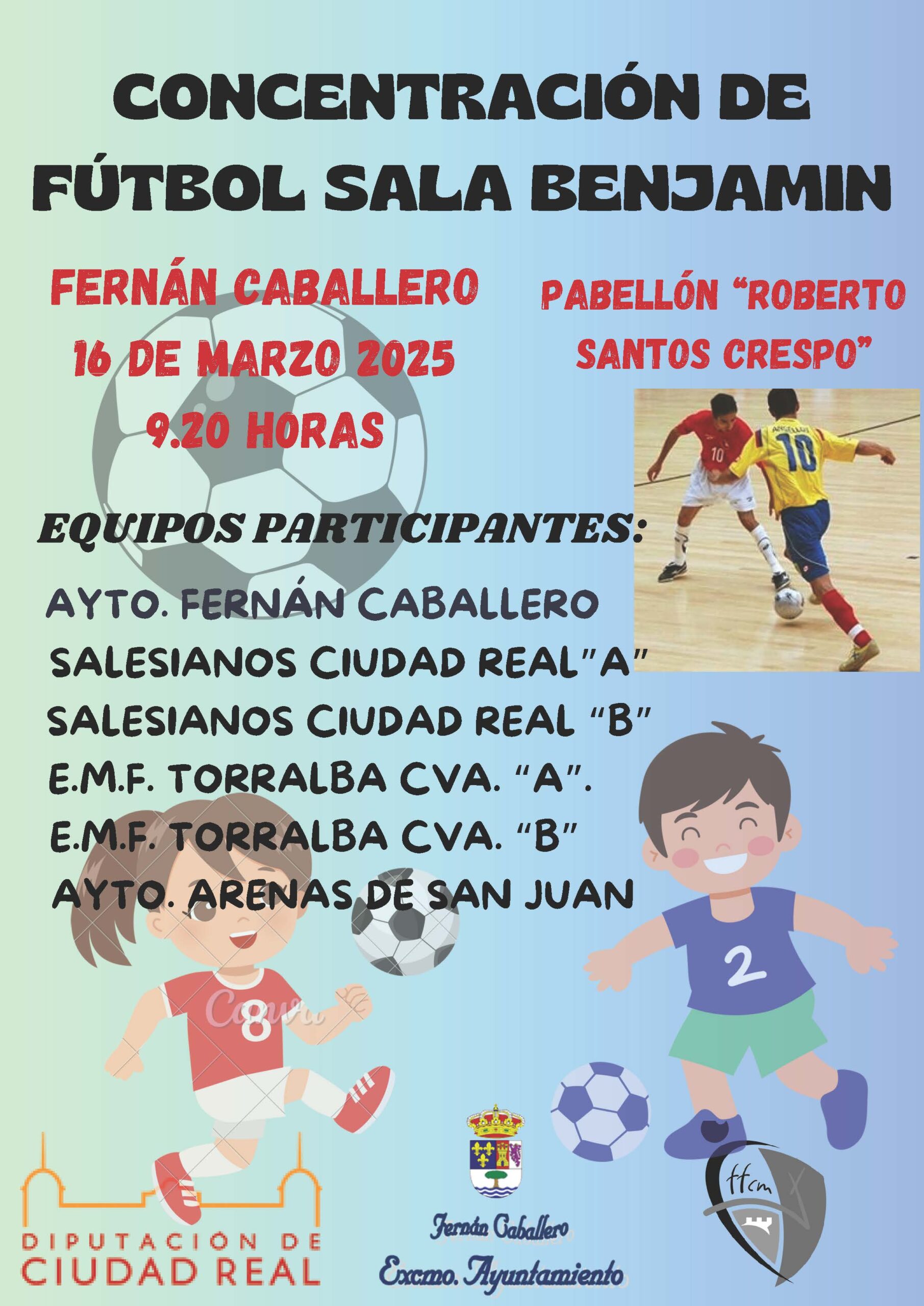 CONCENTRACIÓN DE FÚTBOL SALA BENJAMÍN Domingo, 16 de marzo de 2025. A las 9:20. Pabellón Roberto Santos Crespo. EQUIPOS PARTICIPANTES:…