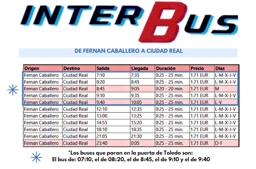 HORARIOS AUTOBUSES – FERNÁN CABALLERO – CIUDAD REAL