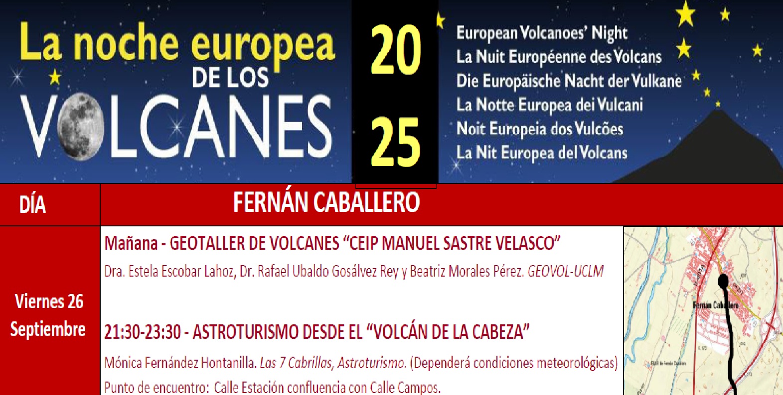 LA NOCHE DE LOS VOLCANES 2025 - FERNÁN CABALLERO VIERNES 26 DE SEPTIEMBRE DE 2025 Mañana - GEOTALLER DE VOLCANES…