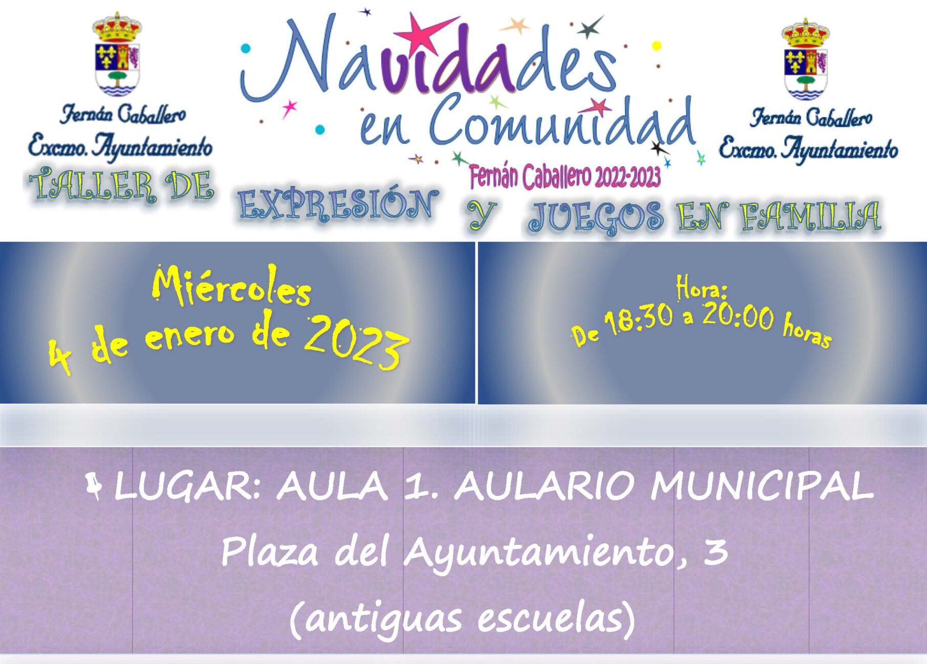 NAVIDADES EN COMUNIDAD - FERNÁN CABALLERO 2022-2023. Miércoles, 4 de enero de 2023. De 18:30 a 20:00 horas. Lugar: Aula…