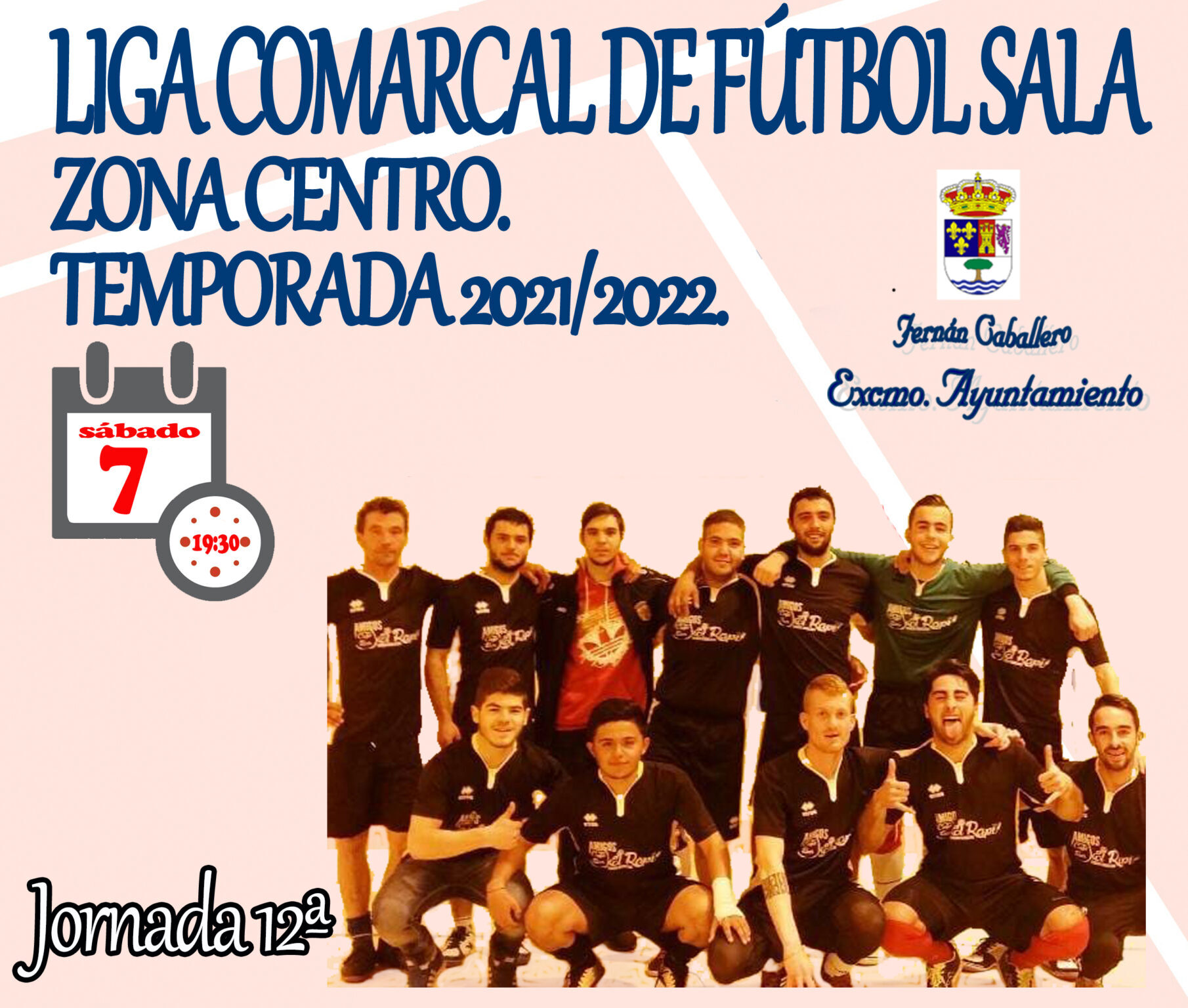 LIGA COMARCAL MASCULINA. FÚTBOL SALA. JORNADA 12ª Viernes, 7 de mayo de 2022. A las 19:30. En el pabellón cubierto municipal. Ayto.…